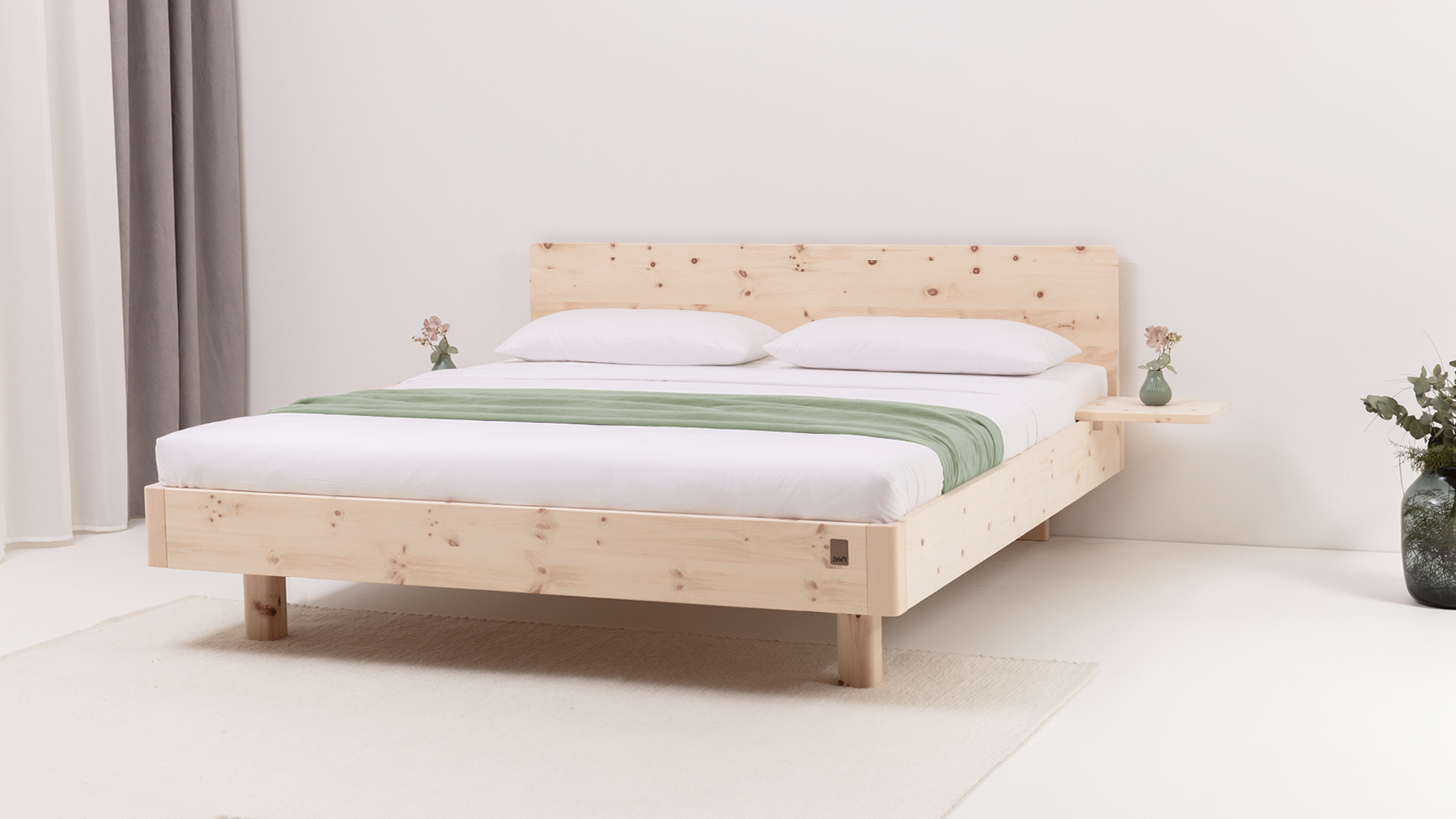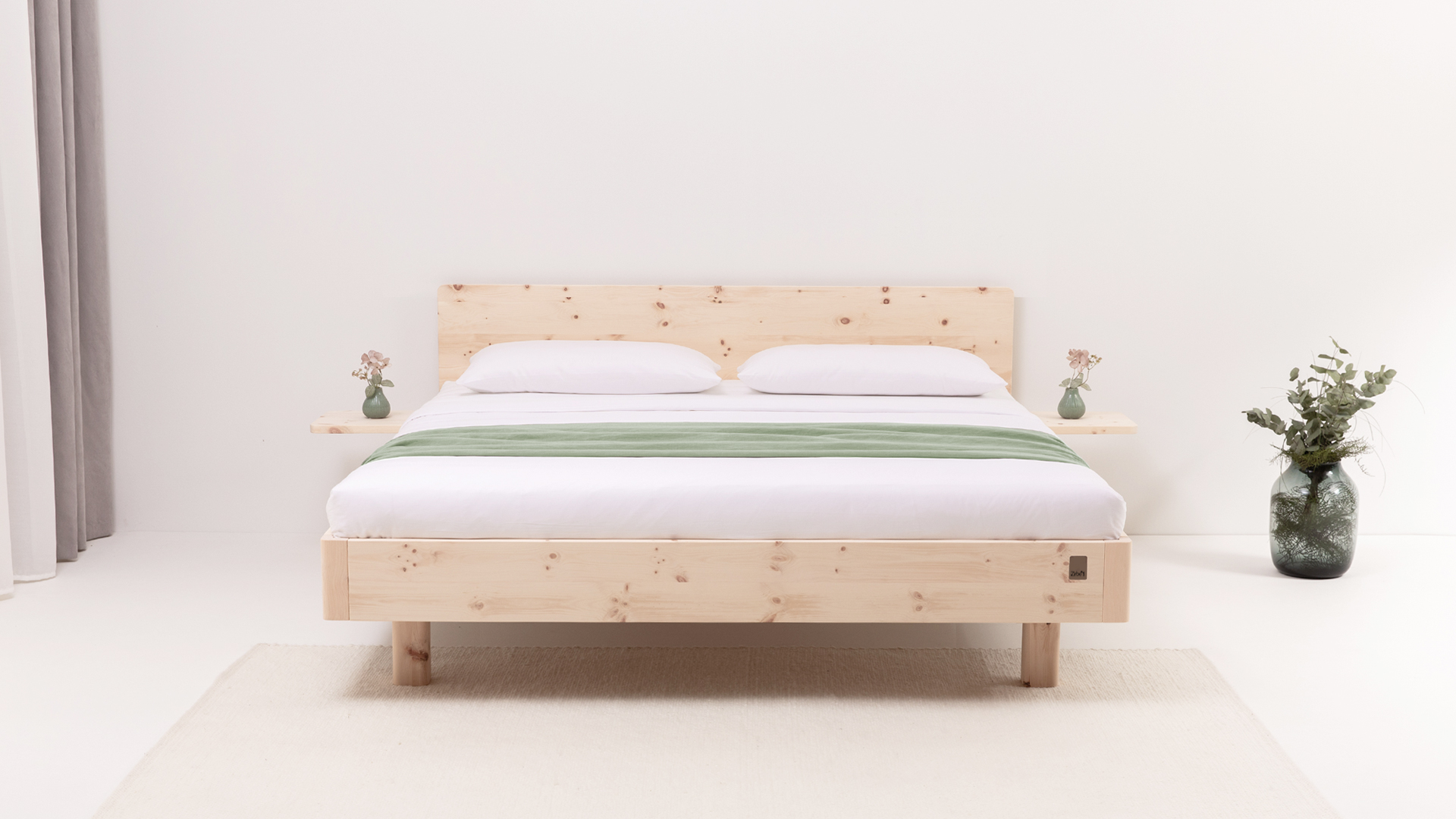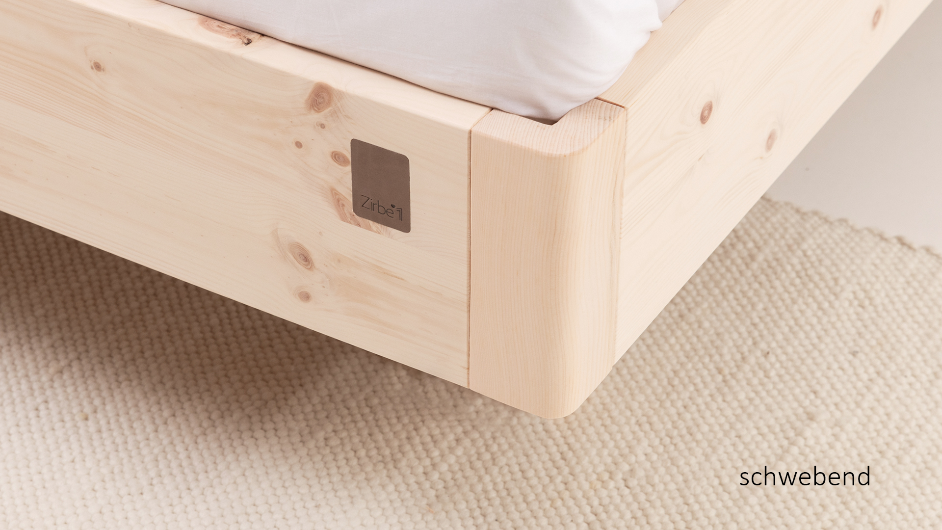 Unser Einstiegsmodell „Die Eins“ verbindet preiswerte Qualität mit zeitlosem Design. Gefertigt aus Splint- und Kernholz der Zirbe, überzeugt es durch Stabilität, schlichte Formgebung und den natürlichen Duft des Holzes – ideal für alle, die gesund und stilvoll schlafen möchten. Nach innen versetzte Bettfüsse verleihen dem Bettmodell "Die Eins" seine schwebende Optik.