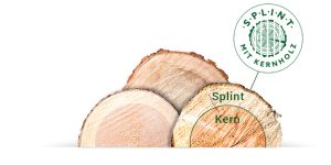 Splint- und Kernholz beschreibt die marktübliche Holzselektion. Neben dem rötlichen Kernholz wird auch helles Splintholz verwendet. Die klassische Verarbeitung mit Splint- und Kernholz gilt in der Zirbenholzverarbeitung als Standard bzw. marktüblich.